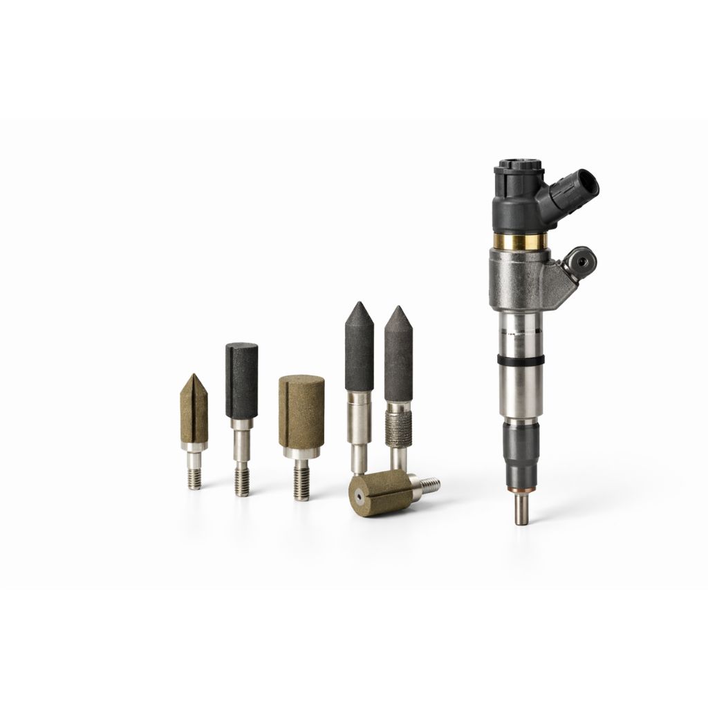 Gängige Fertigungsverfahren für Einspritzkomponenten ist das Sitzschleifen und Bohrungsschleifen. Herausforderung bei diesen Schleifanwendungen sind die kleinsten Werkzeugabmessungen, die dennoch ein hochpräzises und ökonomisches Schleifen ermöglichen müssen.