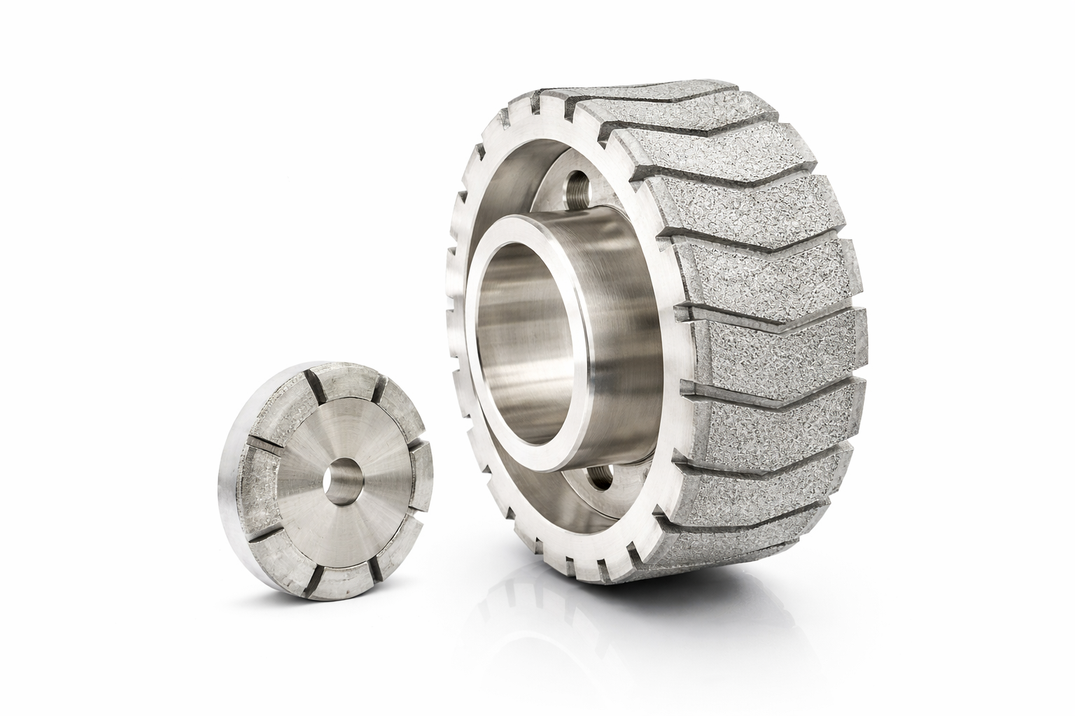 Zum Einsatz kommen geschlitzte BSL- oder galvanisch gebundene Schleifscheiben für Serien- und Großserienprozesse. Sie ermöglichen das wirtschaftliche Schleifen von Reibflächen, Fasen, Nuten und Kanten bei gleichzeitig hoher Reproduzierbarkeit.